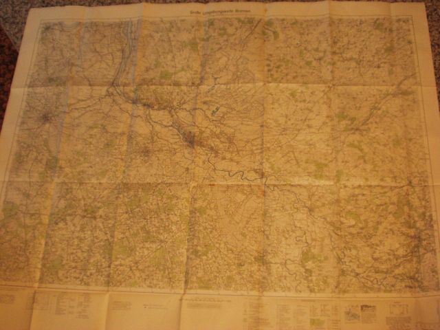 BREMEN.– GROSSE UMGEBUNGSKARTE.– Hrsg. vom Reichsamt für Landesaufnahme. Zusammendruck aus der Übersichtskarte von Mitteleuropa von 1942. 1:100000. Berlin, 1942. ca 100 x 110 cm. In 3 Farben. gut erhalten.