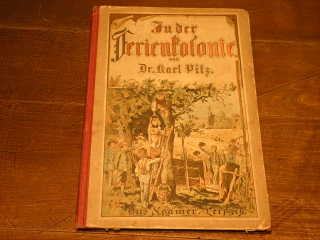 PILZ, Karl: In der Ferienkolonie. oder Segen der Liebe zur Mutter. Eine Erzählung für Kinder von neun bis zwölf Jahren. 2. Aufl. Leipzig (Spamer), 1892. 108 S. mit 29 Textabb. + 1 farblithogr. Titelbild. farb. ill. OHLn. Kanten leicht bestoßen und gebräunt.
