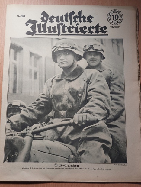 2. WELTKRIEG.– ZIMMERMANN, Richard: (Redaktion) Deutsche Illustrierte. 15. Jahrgang. Heft 1 – 52 in 52 Heften ( so komplett). Berlin (Erich Zander), 1939. 37 x 28 cm. über 1000 S. mit zahlr. zumeist fotografischen Bildern. ill. OBr. Kanten teils bestoßen und gebräunt, vereinzelte Einrisse, das Heft 52 mit loser Titelseite und etwas stärker lädiert. Eindrucksvolles Dokument für Nationalsozialismus und den Beginn des 2. Weltkriegs. „Deutsche Illustrierte“ ist der Name einer Zeitschrift, die von 1928 bis 1944 in Deutschland erschienen ist. Es handelte sich um ein Magazin mit einem breiten Themenspektrum, das sowohl aktuelle politische und gesellschaftliche Ereignisse als auch kulturelle Inhalte und Unterhaltung umfasste. Die Zeitschrift war bekannt für ihre hochwertigen Illustrationen und Fotografien. (Wikipedia)