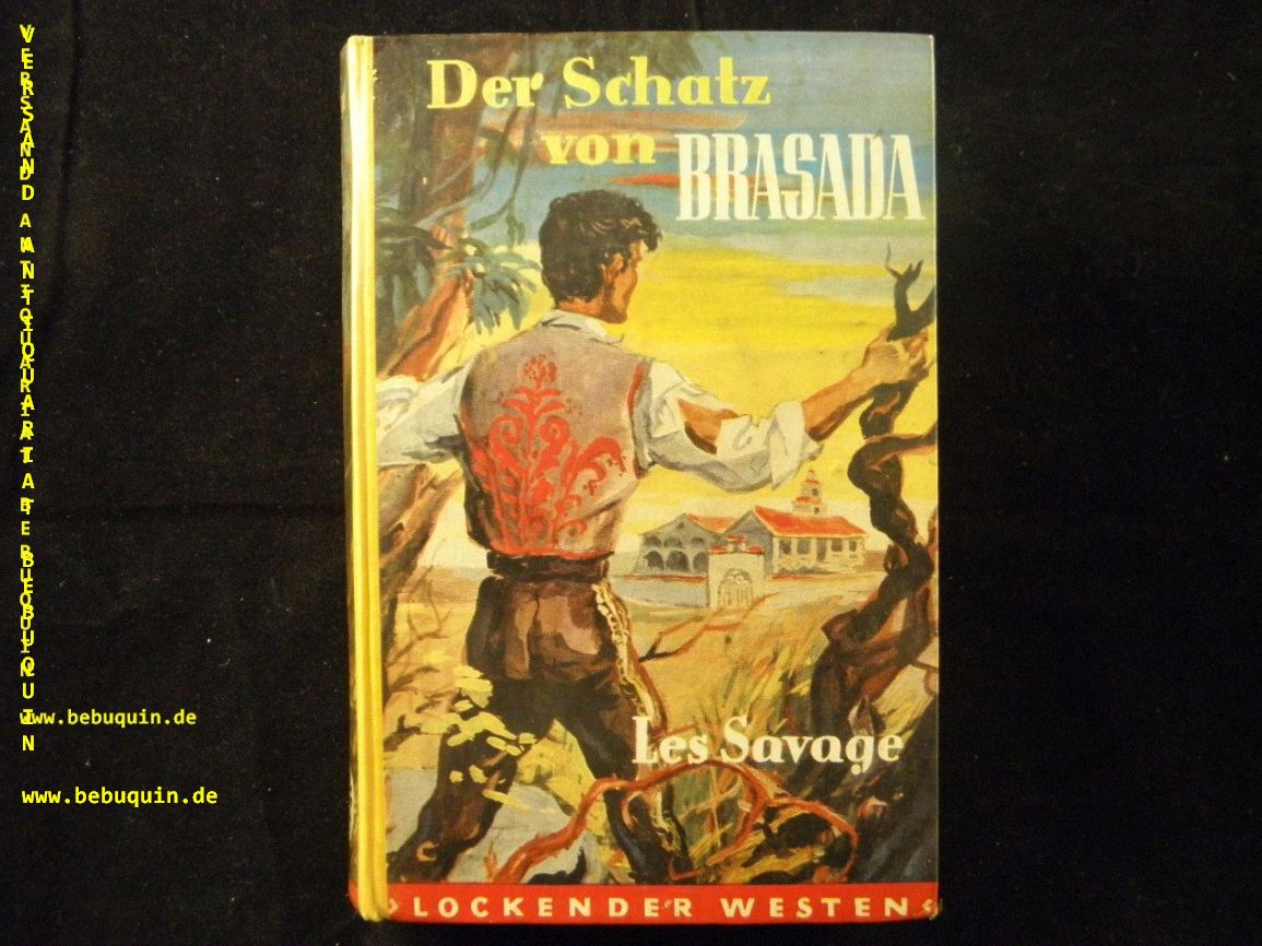 SAVAGE, Les Jr.: Der Schatz von Brasada. D.v. Hansheinz Werner. München (AWA), ca 1955. 255 (1) S. farb. ill. OHLn. gestempeltes Leihbuch. = Lockender Westen. dt. EA.