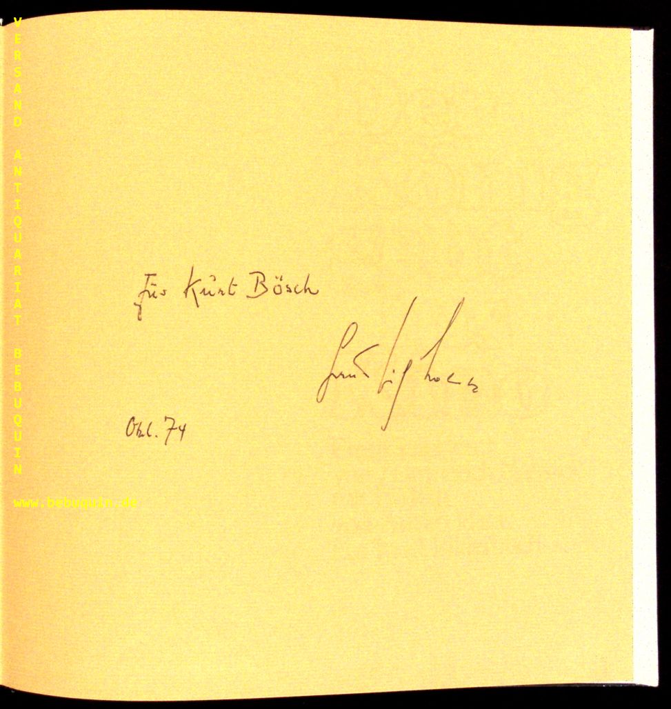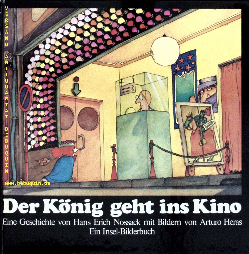 NOSSACK, Hans Erich: Der König geht ins Kino. Eine Geschichte. Frankfurt (Insel), 1974. Gr. 8°. 15 ungez. Bl. mit Bildern von Arturo Heras. farb. ill. OPb. = Insel-Bilderbuch. EA mit einer eigenhändigen Verfasserwidmung auf Vorsatz.