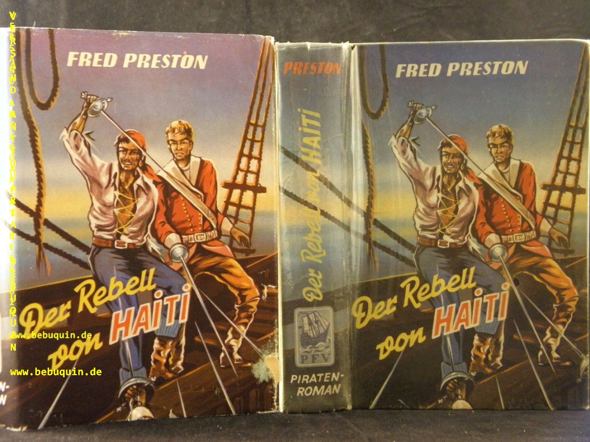 PRESTON, Fred: Der Rebell von Haiti. Piraten-Roman. Marl Hüls (Feldmann), 1953. 253 S. farb. ill. OPb mit OUmschl gestempeltes Leihbuch, etwas gelockert, schönes Ex. 1. Aufl. dieser Ausgabe.