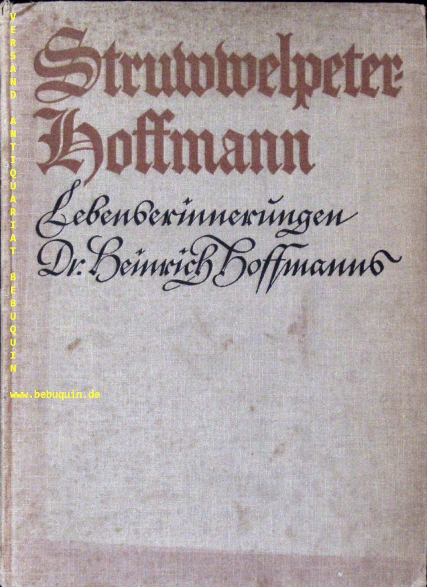 STRUWWELPETER.– HESSENBERG, Eduard: (Hrsg.) Struwwelpeter-Hoffmann erzählt aus seinem Leben. Lebenserinnerungen Heinrich Hoffmanns. Frankfurt (Englert u. Schlosser), 1926. 4°. 231 S. mit zahlr. teils farb. Bildtafeln. OLn. Einband stärker bestaubt. = Frankfurter Lebensbilder, 9. EA.