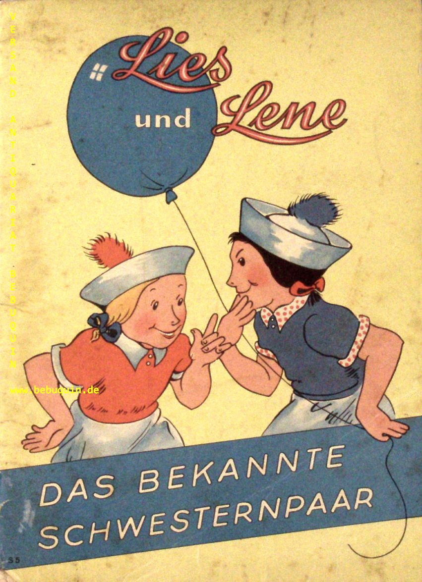 STRUWWELPETER.– LEVETZOW, Hulda von: Lies und Lene. Das bekannte Schwesternpaar. Eine Buschiade für groß und klein in sieben Streichen. o.O. (Pestalozzi), ca 1950. Gr. 8°. 20Bl. mit zahlr. farb. Illustrationen von Otto Waffenschmied. farb. ill. OKart. leicht angeschmutzt und bestoßen. = Verlagsnummer S5. wohl die 1. Aufl. dieser neu illustriertem Ausgabe.