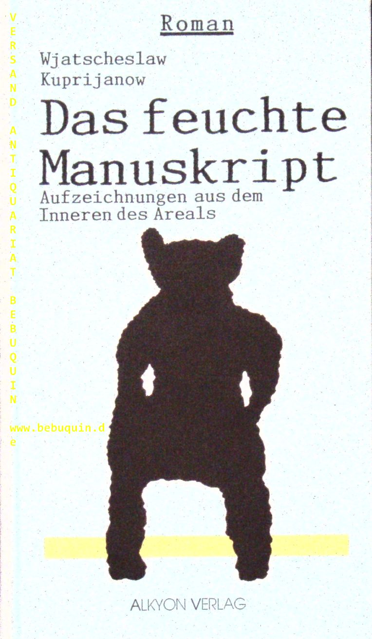 KUPRIJANOW, Vjaceslav: Das feuchte Manuskript. Aufzeichnungen aus dem Inneren des Areals. Weissach (Alkyon), 1991. 144 S. mit Abb. ill. OPb. tadellos. dt. EA mit der Signatur des Verfassers auf Vorsatz.